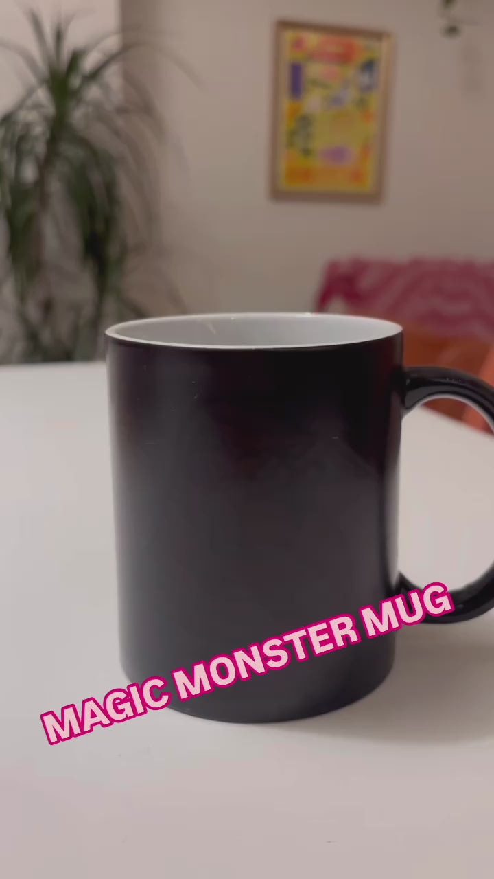 This mug has a black glossy finish when it's empty. When a hot beverage is added, the mug reveals your beautiful artwork. Perfect for your morning coffee, a hot chocolate, or any other hot beverage you enjoy. The mug is not microwave and dishwasher safe.