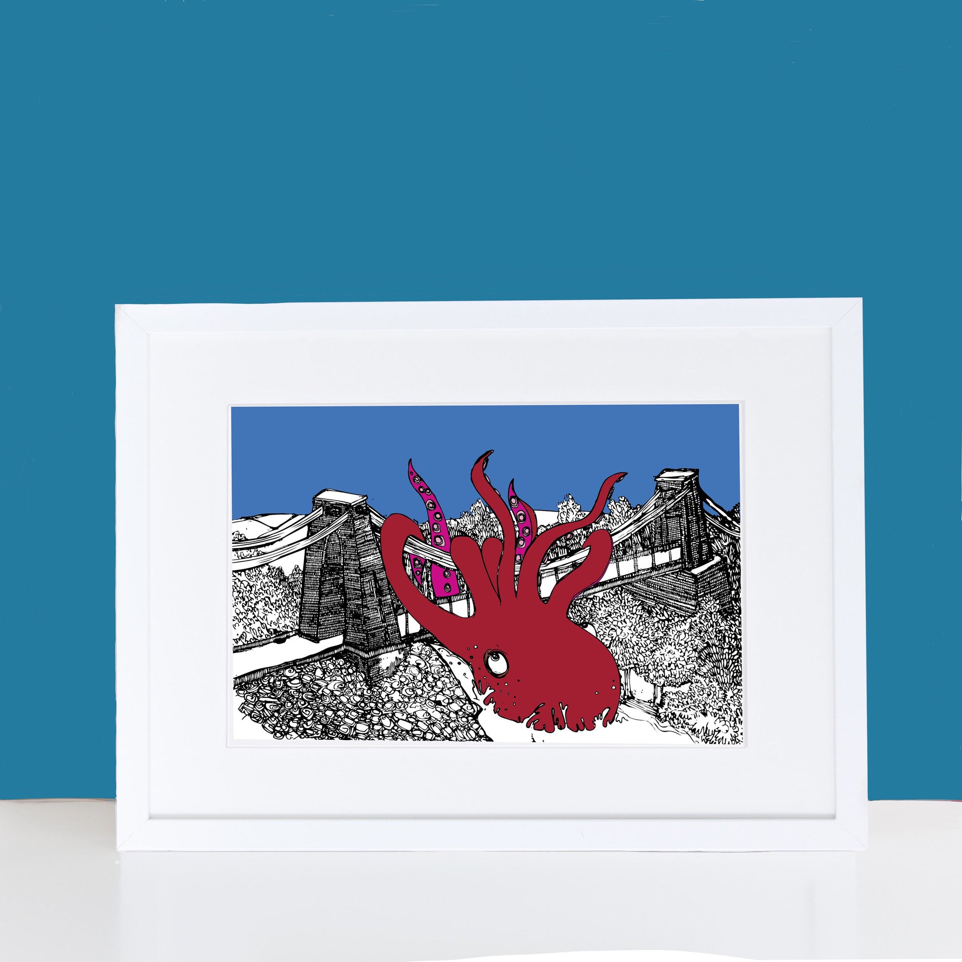 An huge over-sized octopus is grappling with the Clifton Suspension Bridge in Beautiful Bristol.
