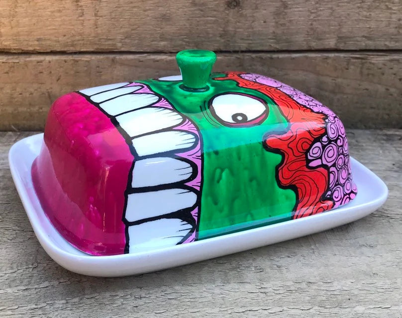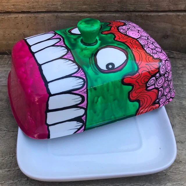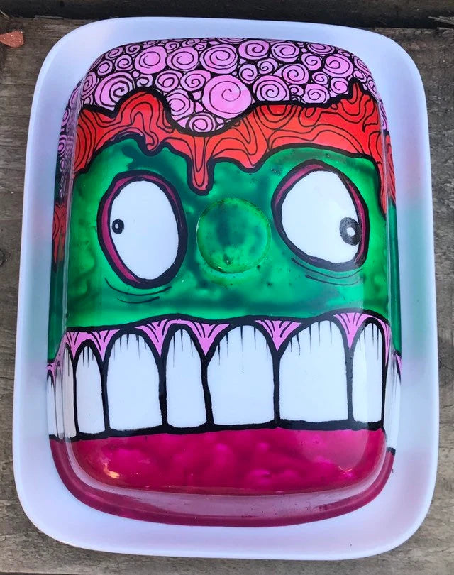Zombie Head Butter Dish - HandPainted Butter Dish